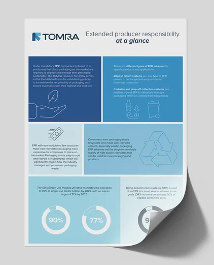 EPR is a strategic policy approach to ensure that producers and manufacturers take responsibility for the full lifecycle of their products and packaging. This industry-funded approach incentivizes producers to prioritize packaging design and management based on the waste hierarchy to achieve better environmental outcomes. This means more producers offer reuse, repair, and recycling over disposal, and ensure that we keep waste out of our oceans and the environment. If you want to learn more about EPR and what it means for both producers and consumers, download TOMRA’s latest white paper. This white paper offers an in-depth look into this policy approach and how it can help with the transition to a circular economy.
