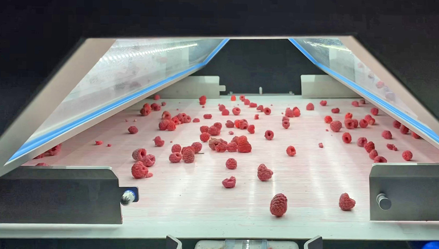 Paola Arévalo confirms: “For this particular application, with IQF raspberries, the great advantage of the TOMRA 5B is the exceptionally gentle treatment, as it is a belt sorter and not a free-fall machine like other solutions on the market. The combination of high-resolution RGBI cameras with 360-degree view and laser technology makes it the most powerful machine on the market, able to detect color defects (albinism), unwanted plant material and foreign matter with the highest efficiency and resolution. In addition, the interface of the TOMRA 5B provides operating flexibility and is easy to set up and operate.”