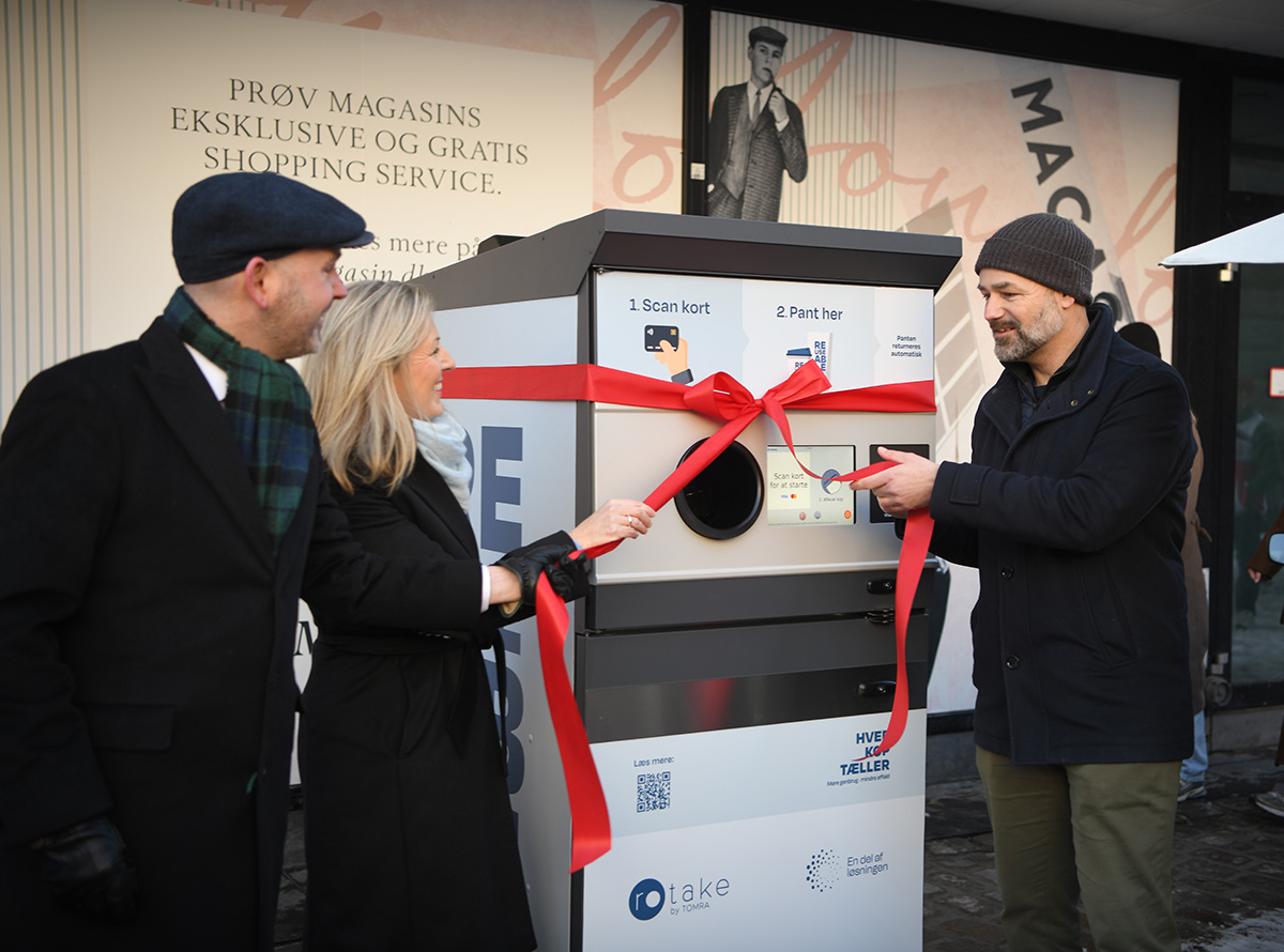 Although it was a cold day in Aarhus at the outdoor press event in “Lille Torv” in the city center on January 17th, those in attendance were kept warm with coffee served in REUSEABLE cups and speeches given by Nicolaj Bang, Alderman for Technical Services and Environment, Aarhus Municipality, Tove Andersen, President and CEO of TOMRA, and Jacob Bundsgaard, Mayor of Aarhus.