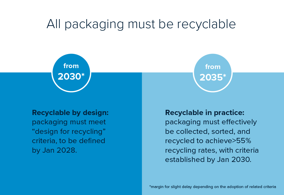 While the specific recyclability criteria will be laid out in secondary legislation, the goal is clear: by 2035, at least 55% of all packaging materials should be recycled.