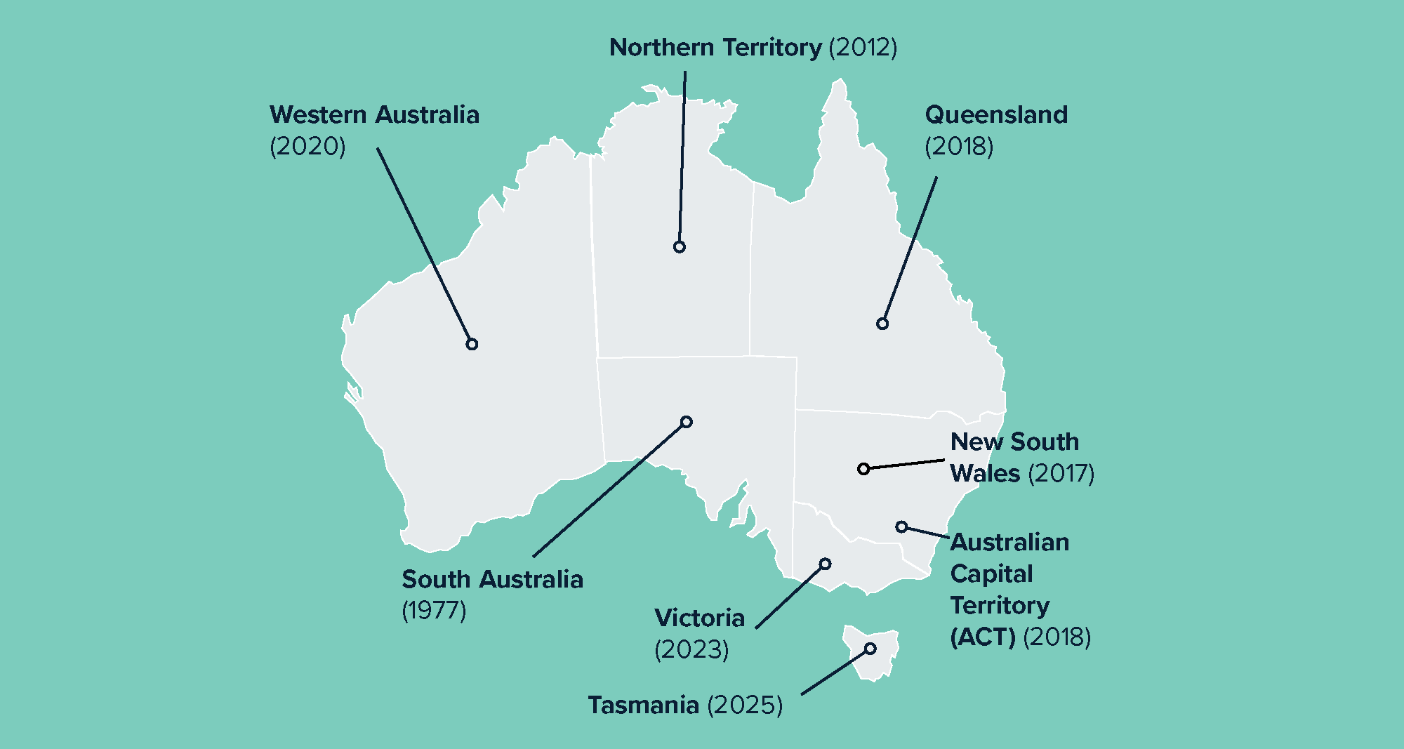 - Tasmania: On 1 May 2025, Tasmania became the final state in Australia to implement a container deposit scheme, called “Recycle Rewards” and known locally as a container refund scheme (CRS). Tasmania will have a network of 49 conveniently located refund points, featuring over 100 reverse vending machines. In the first four days of the CDS, Tasmanians returned more than 1 million containers.