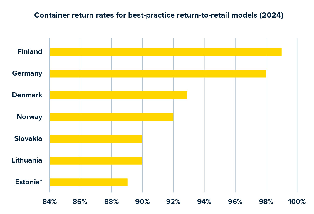 6 “Global Deposit Book 2024,” Reloop. 2025 and Global Deposit Dashboard latest rates.