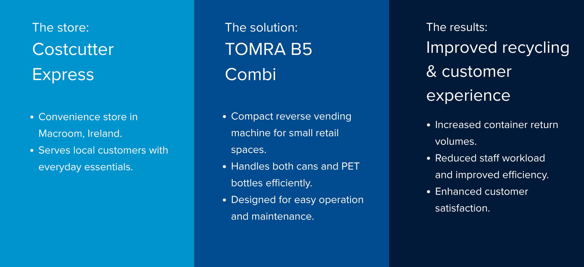 The successful integration of the TOMRA B5 Combi at Murphy's Costcutter Express Macroom serves as a model for other stores across Europe, demonstrating how businesses collecting lower volumes can effectively combine convenience with a positive impact, by promoting and rewarding responsible recycling behavior.