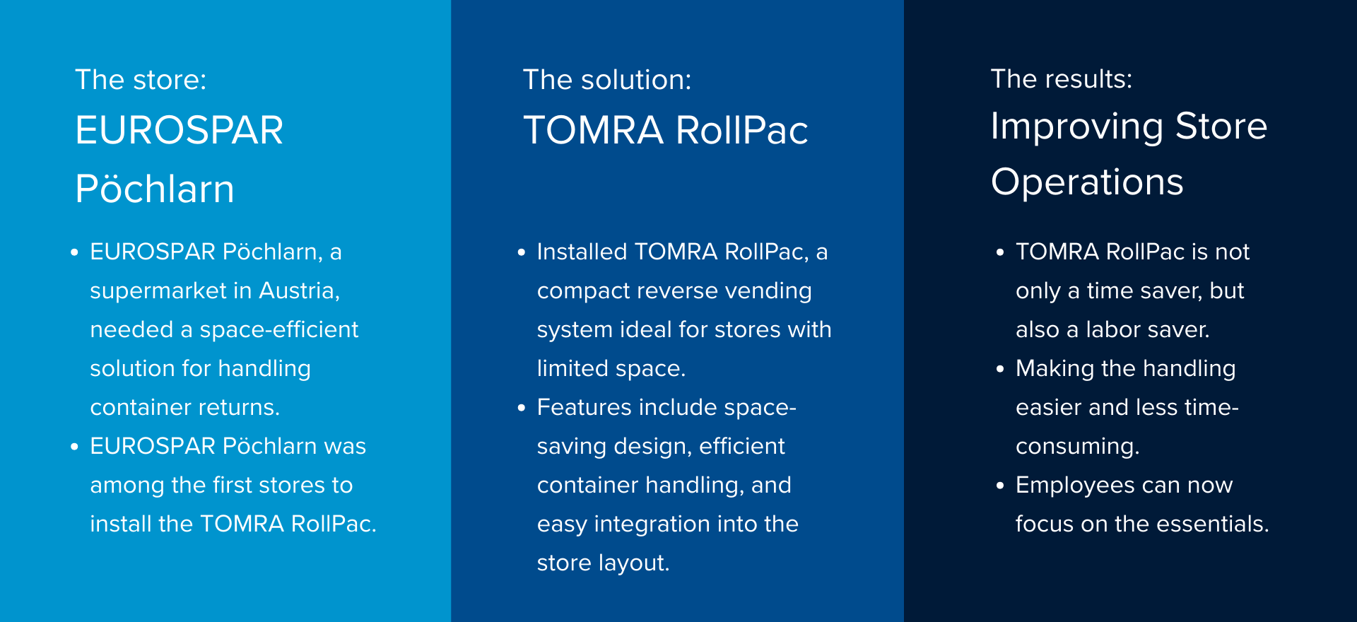 After nearly six months in use, TOMRA RollPac has become an integral part of everyday life in the EUROSPAR Pöchlarn store, reliable for customers, employees and store management.