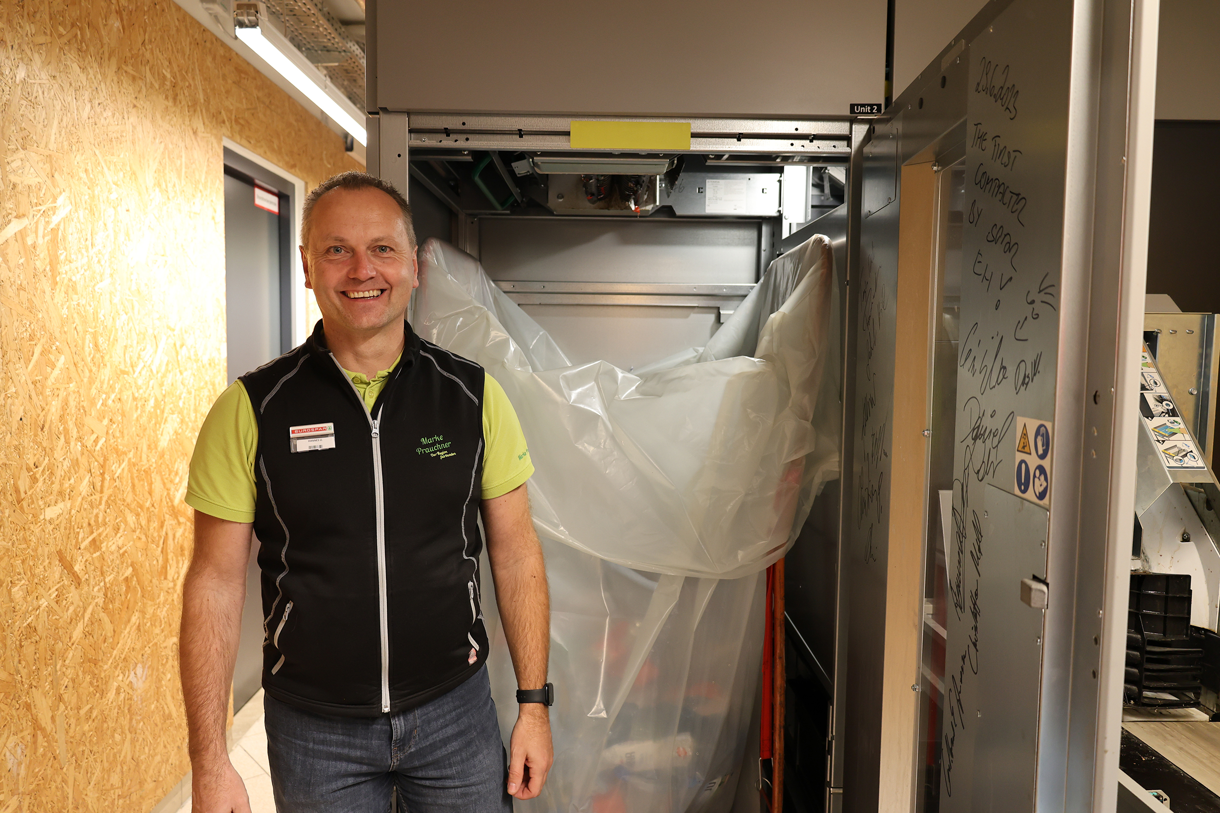 EUROSPAR Pöchlarn was among the first stores to install the TOMRA RollPac vertical backroom solution for storing returned drink containers. Given the store’s narrow backroom layout, installing two TOMRA RollPac cabinets back-to-back was a very practical way of maximizing the use of the limited store space and utilizing the height of the room.