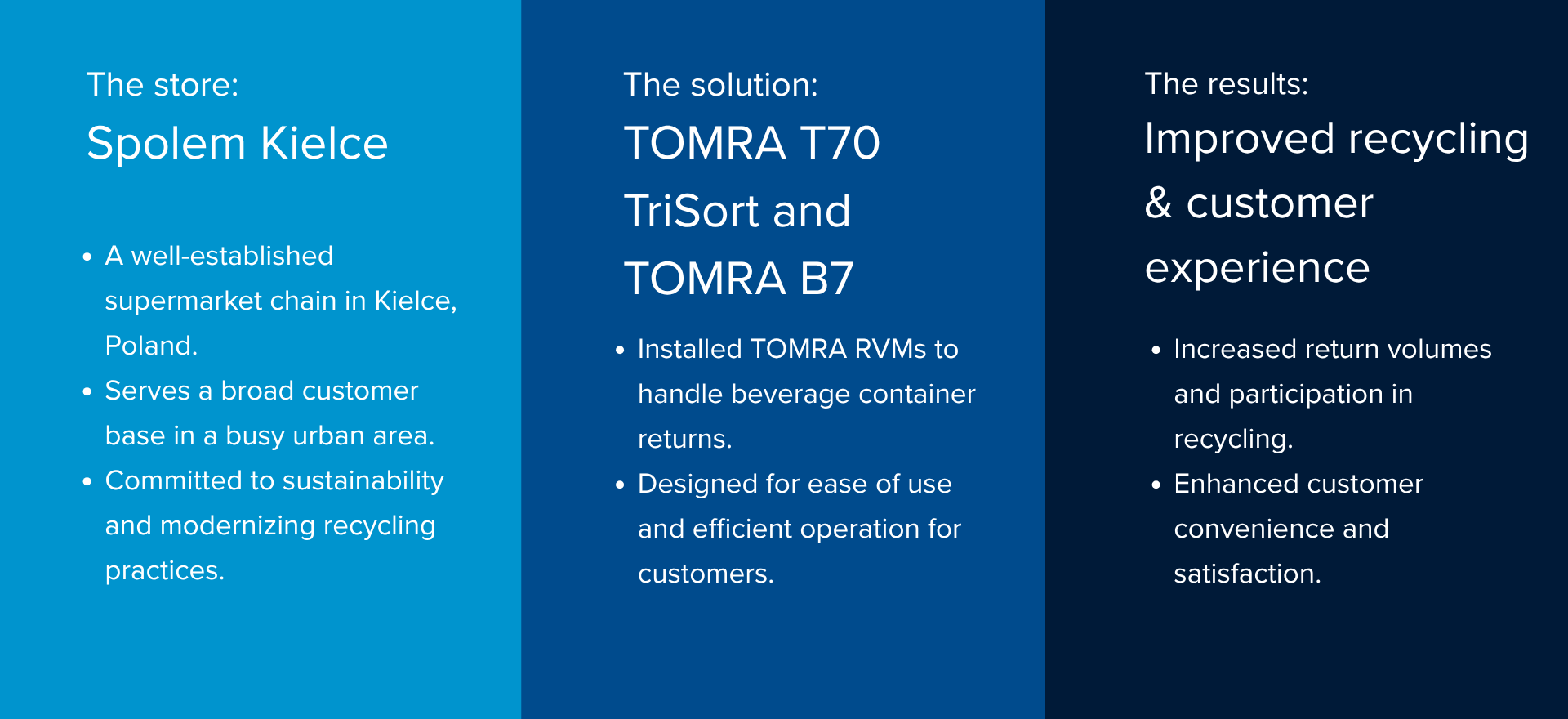 The cooperation between Społem Kielce and TOMRA was based on a shared commitment to high quality and a customer-oriented approach. TOMRA Collection Polska was responsible for the efficient installation of the devices in all stores and provided classroom training for staff, such as cleaning and basic maintenance, so that the teams could operate the new technologies independently and confidently.