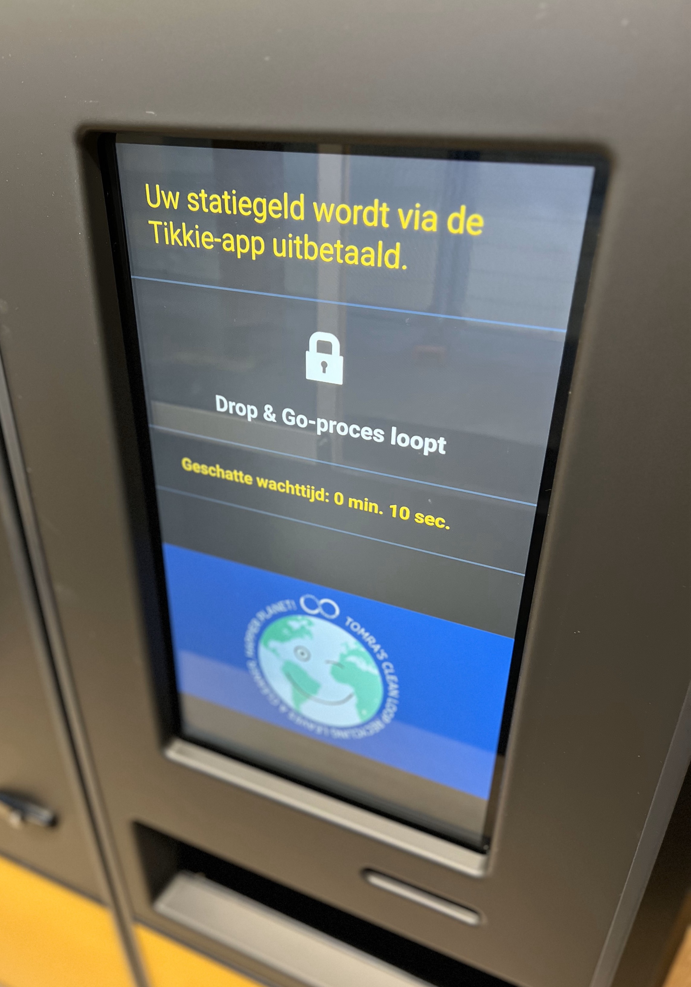 So how does it work? All they have to do is scan the QR code of Tikkie on the reverse vending machine's screen and the hatch opens automatically. Then people can empty their bag of beverage containers, close the hatch again, and leave the machine. The machine immediately starts counting and sorting the containers, after which the deposit is paid out digitally via Tikkie within seconds.