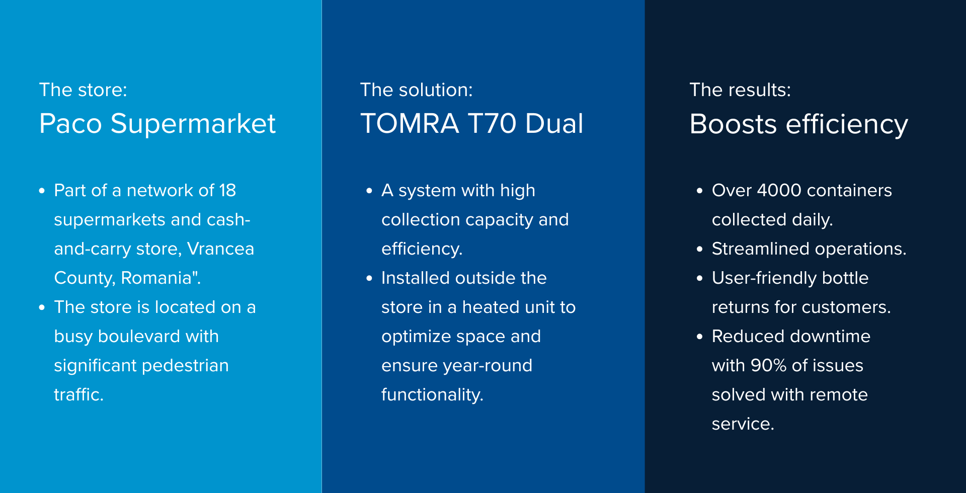 Paco Supermarkets has not only optimized container collection but also strengthened its commitment to sustainability and customer satisfaction. The system's efficiency, reliability, and ease of maintenance make it the ideal solution for meeting the demands of Romania's deposit return scheme.